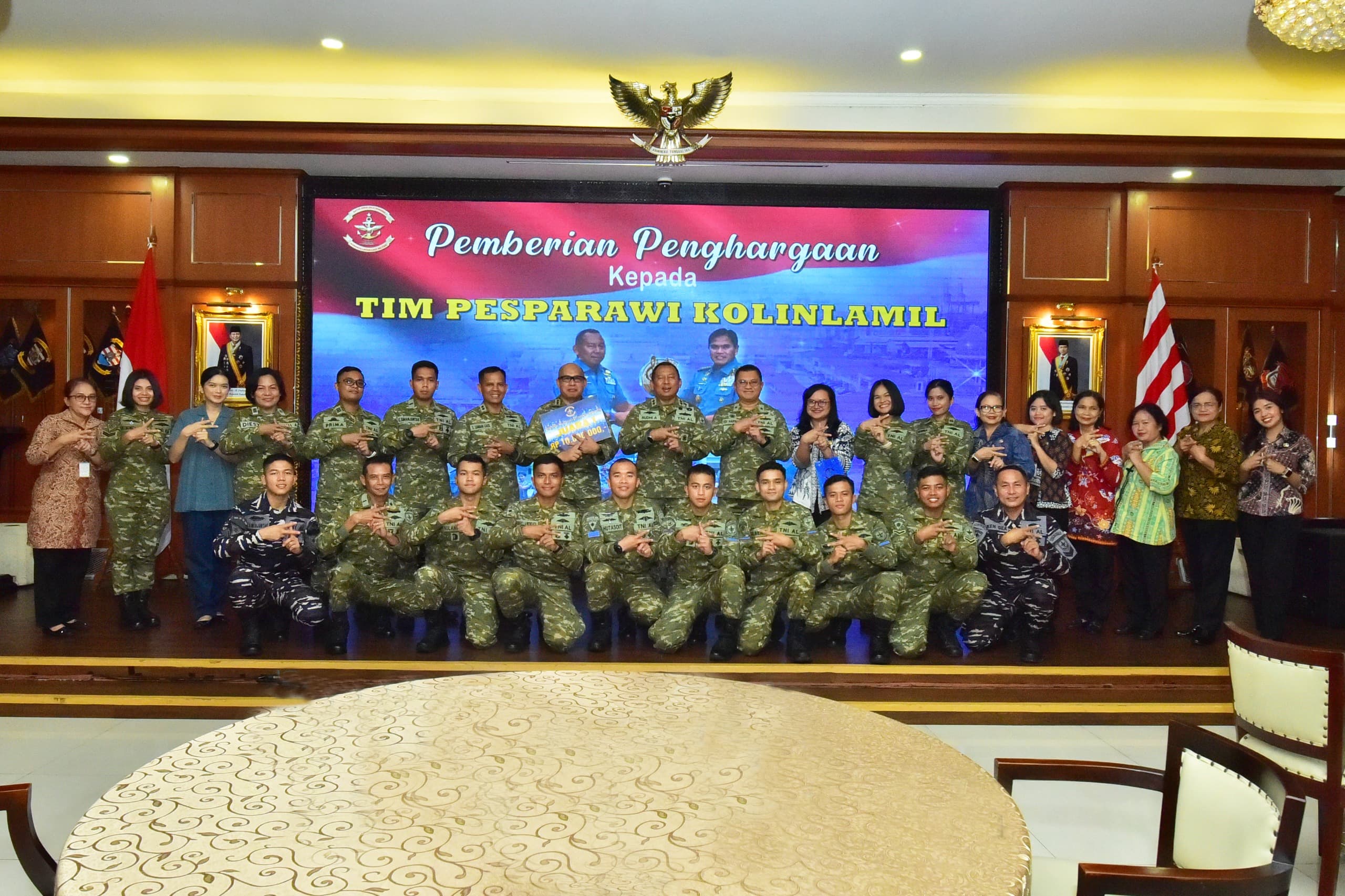 Berita Kolinlamil TNI AL, kabarsenayan.com. — Panglima Komando Lintas Laut Militer (Pangkolinlamil) Laksamana Muda TNI Rudhi Aviantara, IH., S.E., M.Si., M.Tr.(Han)., CHRMP., memberikan penghargaan dan apresiasi kepada Tim Pesparawi (Pesta Paduan Suara Gerejawi) Kolinlamil atas keberhasilan meraih Juara I dalam Lomba Pesparawi TNI Angkatan Laut Wilayah Jakarta Tahun 2025. Kegiatan tersebut berlangsung di Gedung Laut Nusantara, Mako Kolinlamil, Tanjung Priok, Jakarta Utara, Jumat (23/01), dan dihadiri para pejabat Kolinlamil serta seluruh anggota Tim Pesparawi.