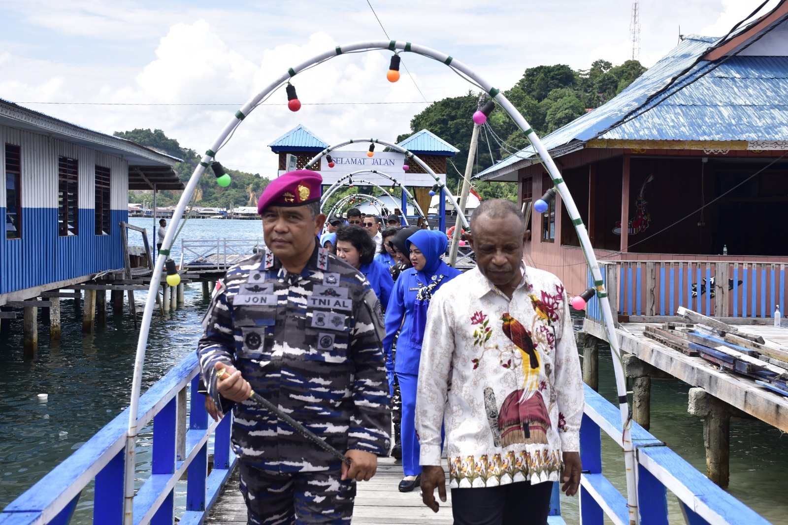 Kegiatan silaturahmi ini turut didampingi oleh Nikolas Jouwe (Ondoafi Kayu Pulo), Beni Sibi (Kepala Suku Kayu Pulo), Pejabat Utama, Dansat, Kadis/Kasatker Kodaeral X, serta para pengurus Jalasenastri Kodaeral X. Kehadiran para tokoh masyarakat dan unsur Kodaeral X tersebut menegaskan kuatnya sinergi, kebersamaan, dan semangat persaudaraan dalam membangun harmoni serta mempererat hubungan antara TNI dan masyarakat di Tanah Papua.